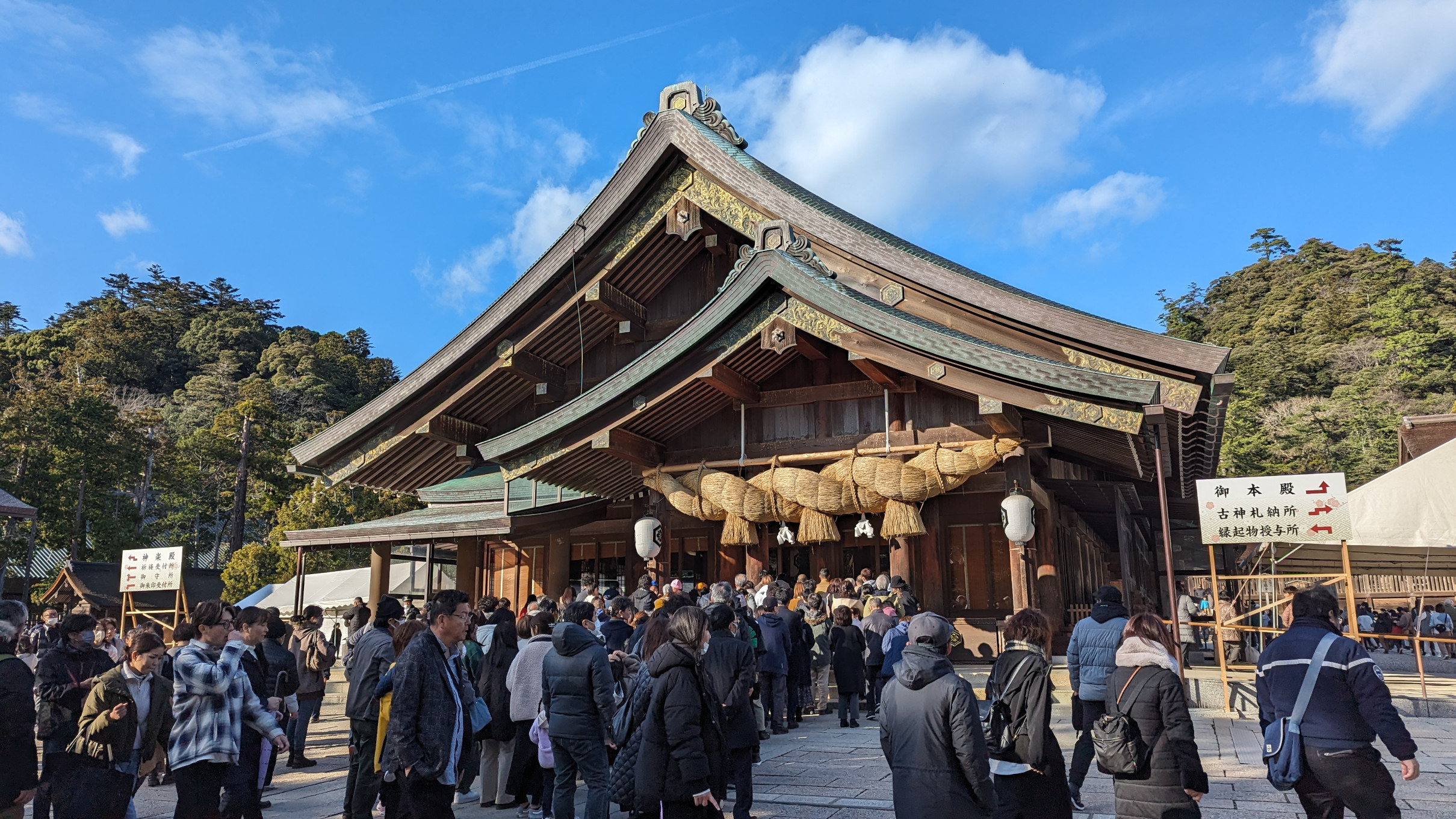 Am 2. Januar wollten wir zum Izumo Taisha, einem Schrein, für unser hatsumôde (erster Schreinbesuch im neuen Jahr). Der Izumo Taisha ist einer der ältesten Schreine Japans und extrem wichtig im Shintôismus. Ich bin kein Shintôist, aber einen so bedeutsamen Schrein schaut man sich gerne an. Wir waren etwas unsicher, da Izumo sich an der Nordwestküste Japans befindet, doch glücklicherweise wurde die Tsunami-Warnung für diesen Teil Japans im Laufe des Vormittags aufgehoben, sodass unserem Plan nichts im Wege stand.