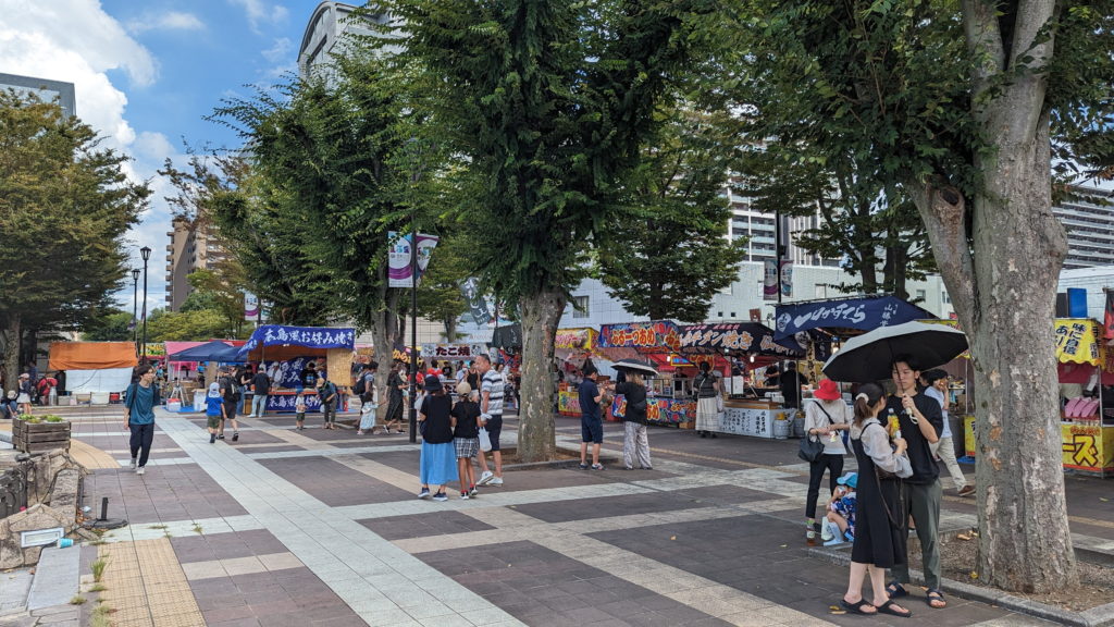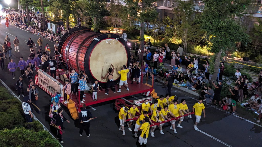 Der Markt an sich war ganz schön, es gab viele Stände mit Leckereien und allerhand selbstgemachte Dinge zu Bestaunen (und Kaufen, wenn man wollte). Ich habe mir alles angesehen und mit einigen der Verkäufer geplaudert, aber am Ende „nur“ ein Eis (kakigoooori) gekauft. Mit Eis in der Hand bin ich dann in Richtung Trommelbühne gegangen.