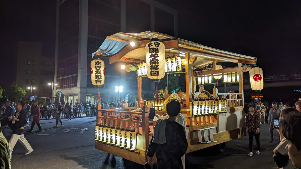 Netterweise hat mein Kollege mich mit dem Auto gefahren, denn es regnete bereits den ganzen Tag in Strömen, da ein Taifun nahte. In Moriya hatten wir nur Starkregen, aber irgendwo nördlich von uns gab es sogar eine Evakuierungsaufforderung, weshalb mein Handy mit einer Warnung bimmelte. War besonders lustig, während ich der Britin gerade erzähle, wie man sich bei Erdbeben und Taifunen am besten verhält und gleichzeitig ein Evakuierungsbefehl reinkommt 😀 Hoffentlich war sie nicht zu schockiert.
