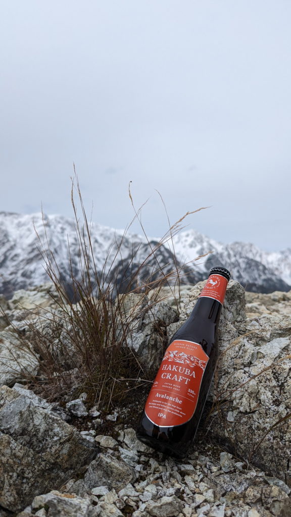 Wir gingen noch ein kurzes Stück hinauf, da man oben gut sitzen konnte. Ein Schild warnte vor dem weiteren Aufstieg, da es nur für erfahrene Bergsteiger empfohlen ist und keine Haftung übernommen wird. Wir wollten aber auch nicht weiter und waren zufrieden mit dem See. Wir machten eine kurze Pause, knabberten ein paar unserer Snacks und stießen mit Hakuba-Bier an.