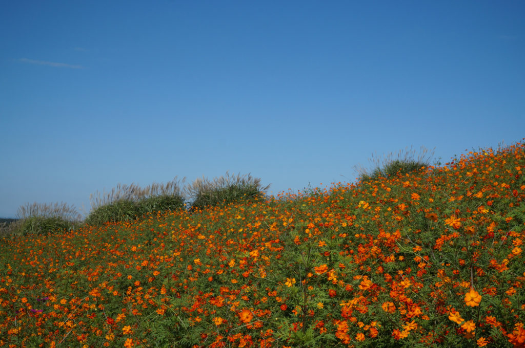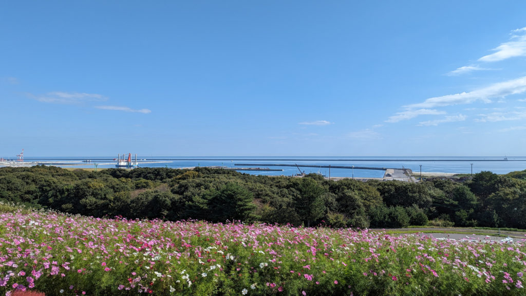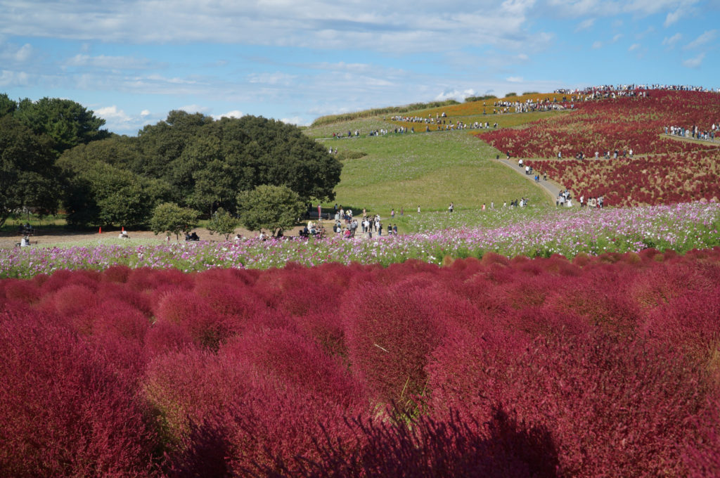 Als Erstes fuhren wir zum Hitachi Seaside Park (Hitachi Kaihin Kôen), der etwa eine Stunde nördlich von hier am Meer liegt. Nicht nur ist er gigantisch; im Herbst blühen da auch Kokia-Pflanzen, die eigentlich grün sind, im Herbst aber eine blutrote Färbung annehmen. Ich wollte das super gerne einmal sehen, da man, wenn man nach Sightseeing in Ibaraki sucht, eigentlich sofort diesen Park findet (im Mai gibt es da wohl ein Meer aus blauen Blumen).