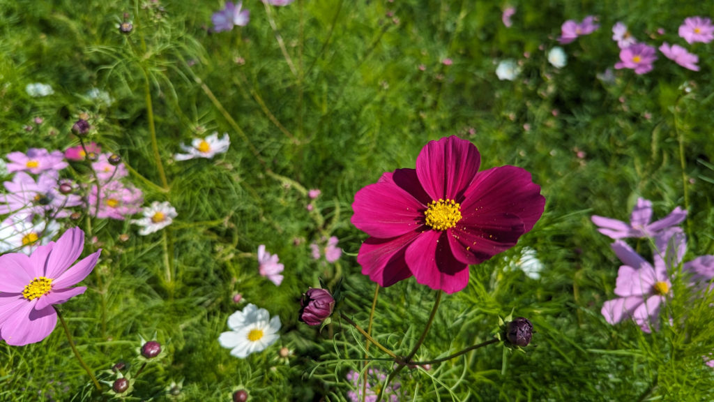 Zwar war gar nicht einmal so wenig los (obwohl Wochentag war), aber es war wirklich schön, die vielen Blumen zu sehen. Und nicht nur die Kokia waren interessant; darüber hinaus gab es noch viele andere bunte Pflanzen wie Kosmos- oder Mohnblumen. Ich bin ja eigentlich kein allzu großer Blumenfan, aber trotzdem war es schön, wie bunt alles war!